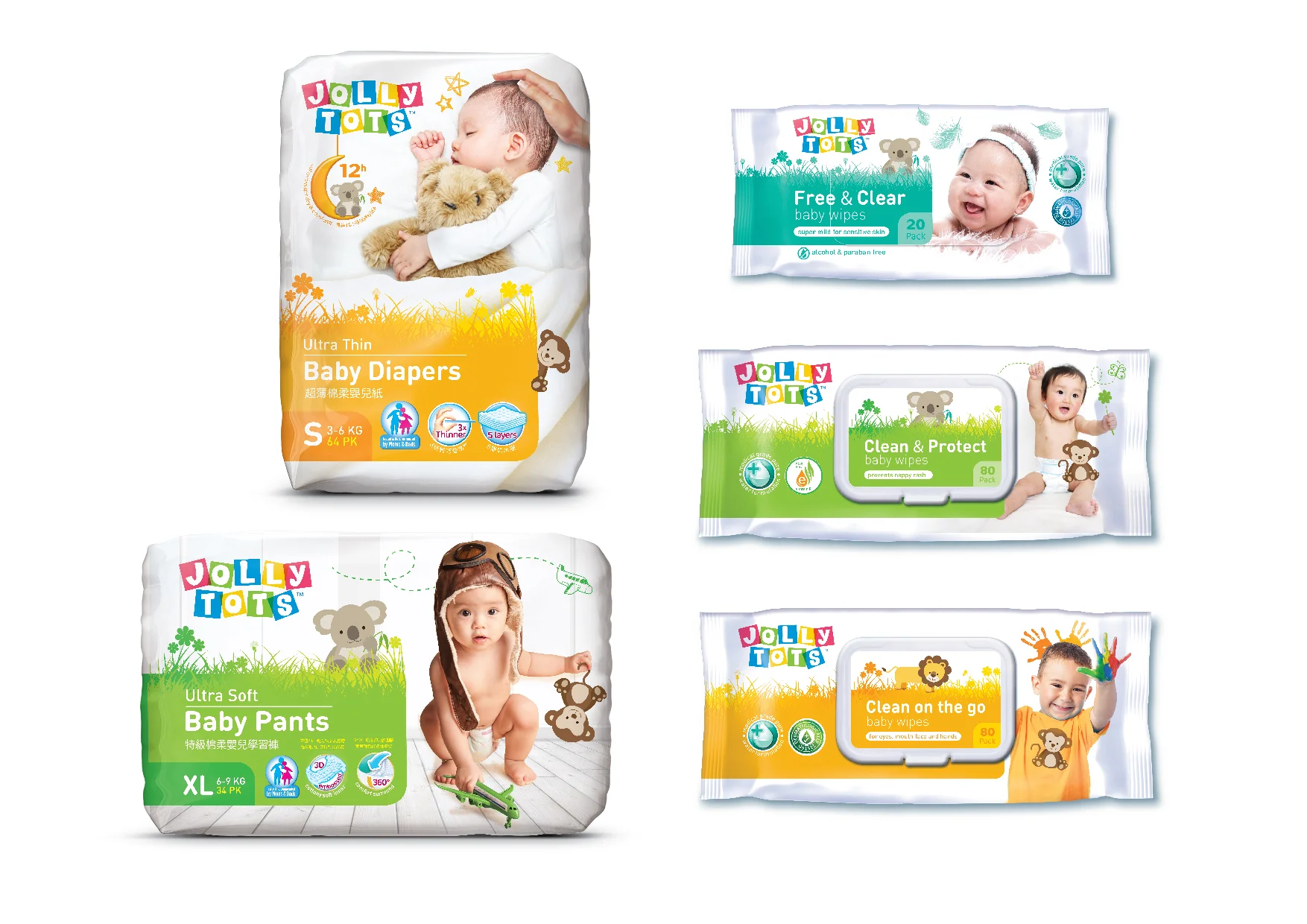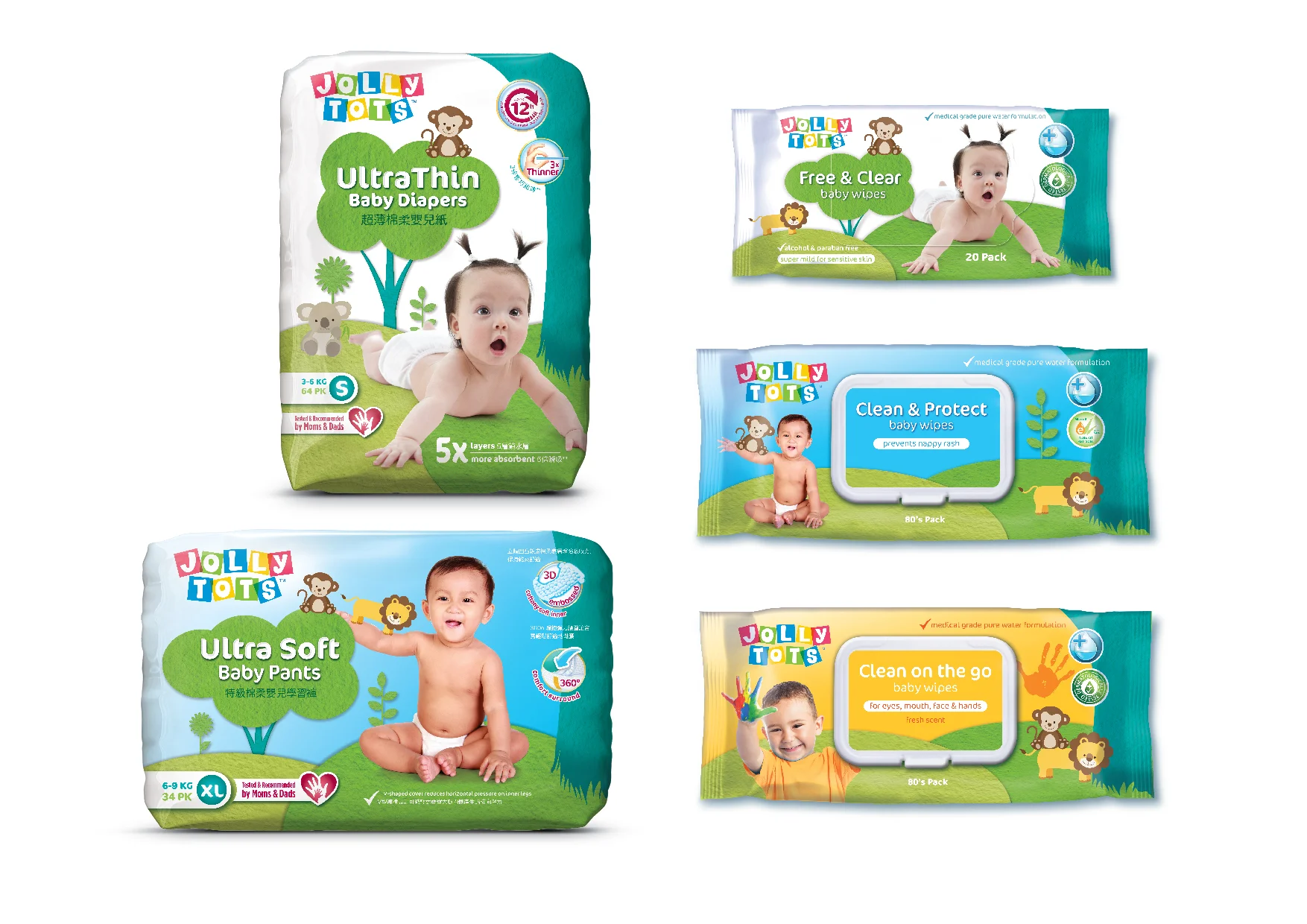 Our designs for Jolly Tots diapers and baby wipes are still in development, but here's a sneaky peak at some early concepts that didn't make the cut...