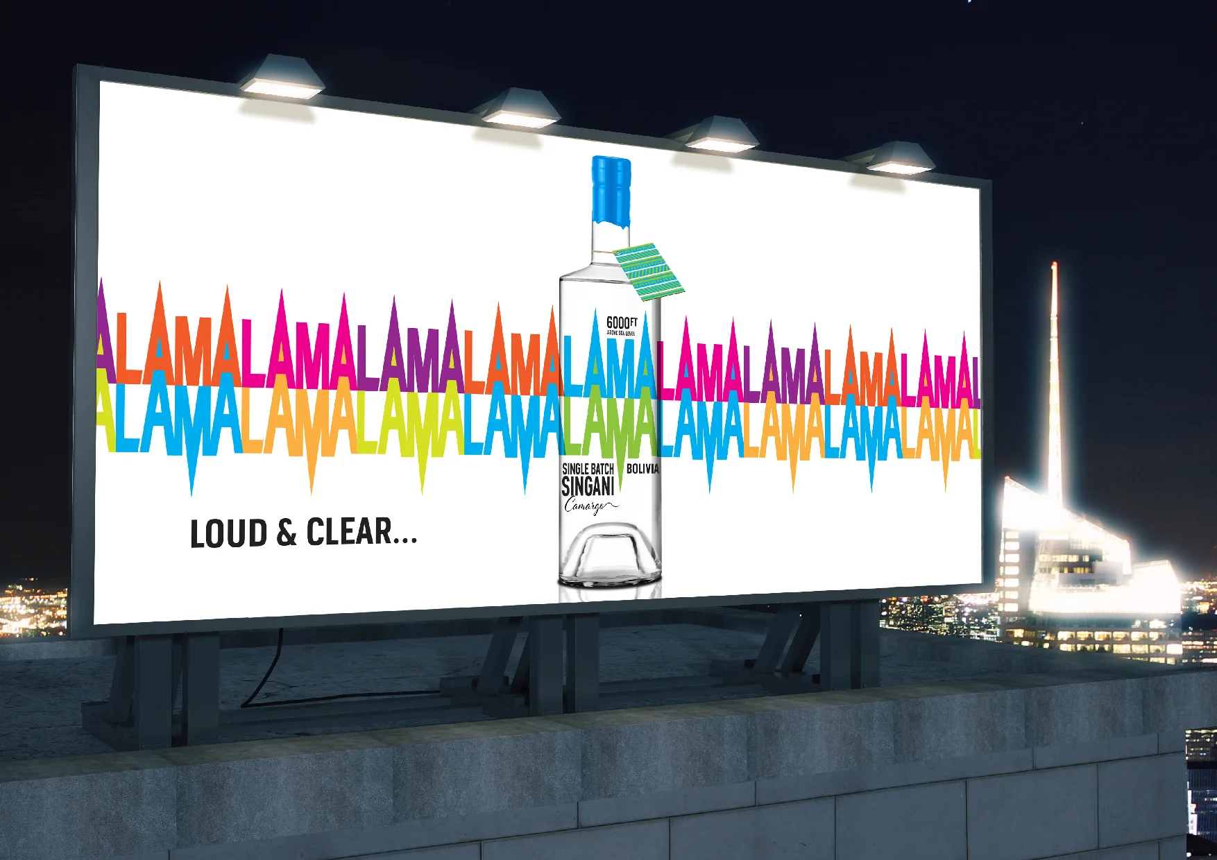 This idea inspired our tall bottle structure along with our bold brand identity, where the A’s become the mountain peaks. Our choice of name is derived from the Llama which is native to the region and our tagline Loud & Clear expresses both the bold design and also the purity of the product.