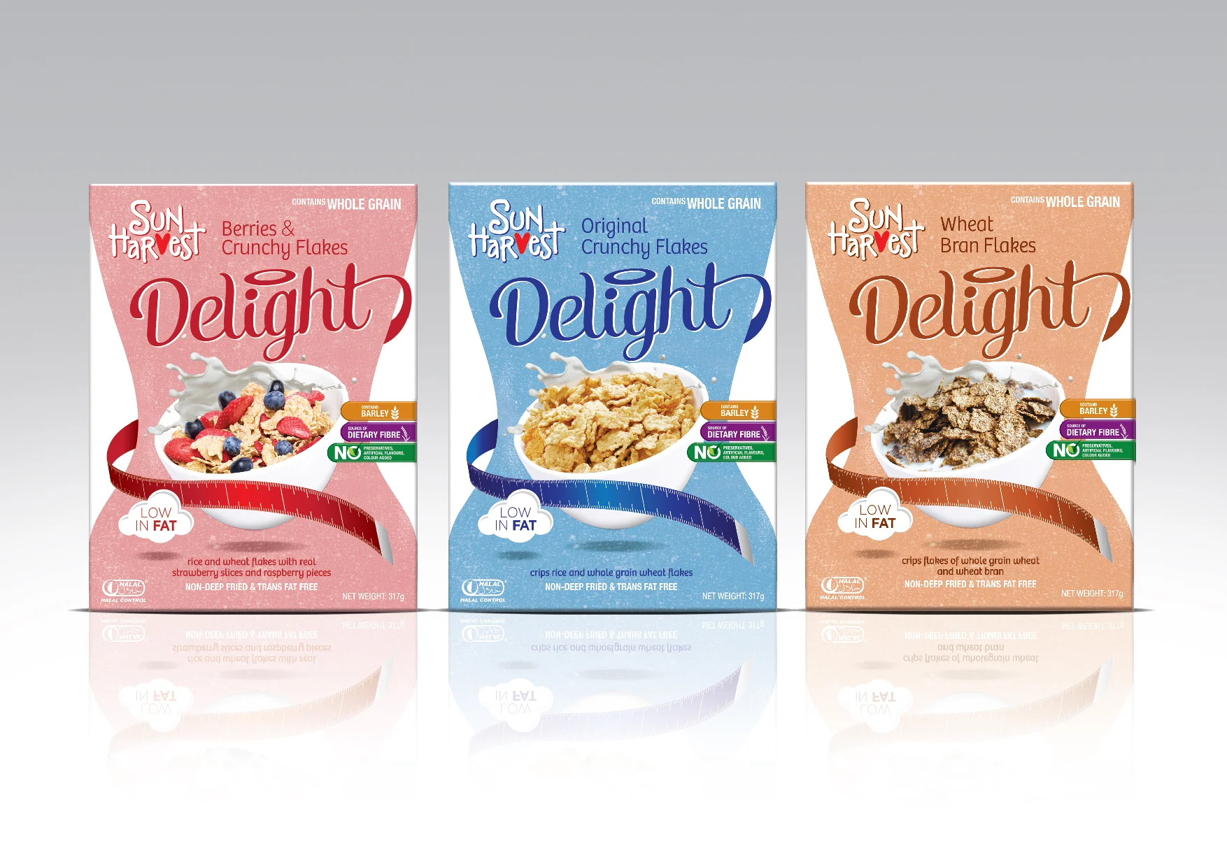 We were asked to look at their range of cereals which included oats and low fat flakes. All the designs had to represent their core idea of wholesome goodness from the start.