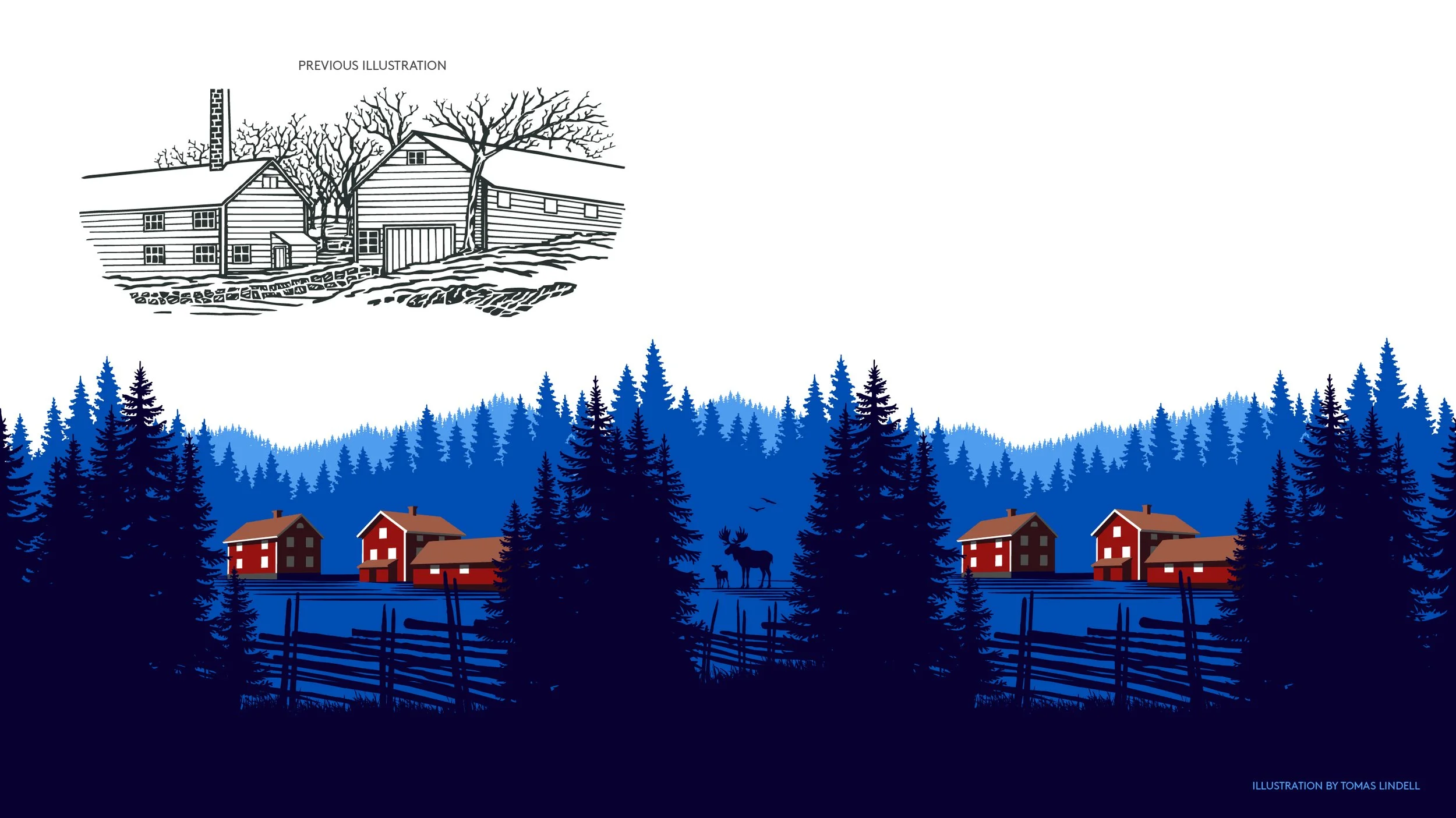 Our approach was created to highlight the Småland provenance with illustrations of the traditonal red houses with white details, forests and fenced farms - elements that have a strong connection to Småland. At the same time, elements from the previous look have been preserved, where both the color palette and logo have been updated in the new visual identity.
